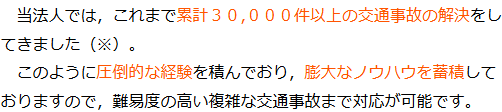 当法人が選ばれる理由についてのページです。当法人は交通事故のご依頼を数多く承ってきた実績があり、安心してご相談いただけるのではないかと思います。
